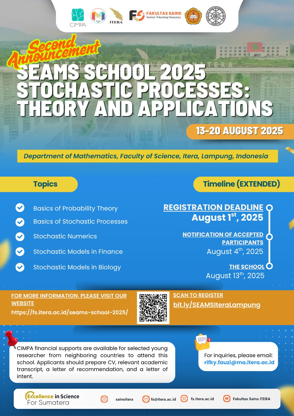Hari kedua SEAMS School 2025 di Institut Teknologi Sumatera (Itera) dimulai dengan sarapan pagi di asrama, diikuti dengan perjalanan menuju Gedung F di Ruangan F108 dengan bus kampus. Kelas pertama dimulai dengan topik “Probability Theory”… Hari Kedua SEAMS School 2025 Itera: Diskusi Aktif dan Interaktif dalam Kelas dan Group Discussion